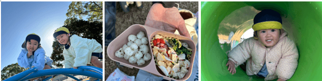 うちの園は優しい子どもたちが多いです♡遊具で遊んだり、お家の方の手作り弁当にニコニコしながら公園の日は楽しみました。