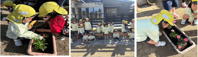 卒園や入園に向けて。チューリップやクロッカスの球根を植えていたのですが、みんなで春のお花をプランタに植えました。余った肥料を園庭のスズランにも上げたら一気に元気になって今年は花を咲かせそうです。