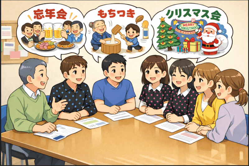 忘年会では、司会の関わり方やプレゼント交換の運用など、細かな改善点がいくつも出てきました。来年は、1000円を集めて事務局が景品を準備する方式に変え、みんなが気持ちよく参加できる形に整えていきます。
