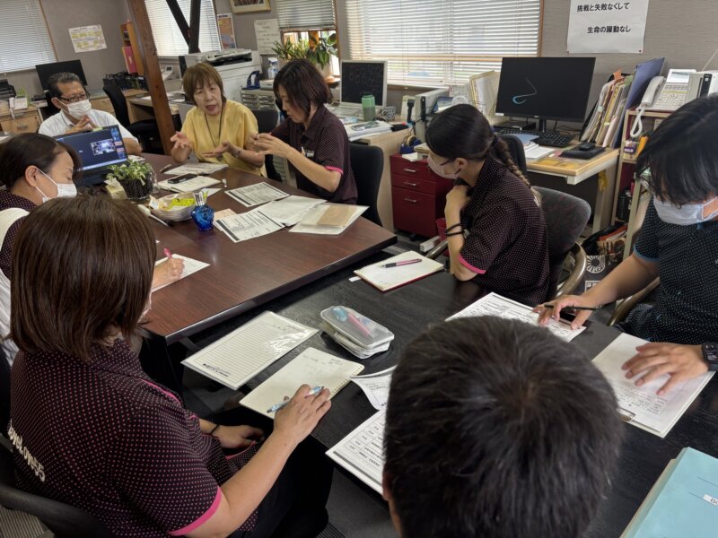 9月17日(水)13時15分より愛あいで、日向市からの集団指導の中にBCP災害・感染・虐待の机上訓練の項目があり、管理者・主任を中心に行いました。